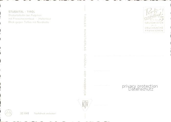 Eisenbahn Stubaitalbahn Fulpmes Stubaital Freischwimmbad-Hallenbad postalisch nicht gelaufen Erhaltung siehe scans