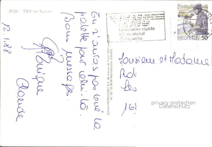 alte Postkarte Eisenbahn TGV en Suisse postalisch gelaufen Erhaltung siehe scans