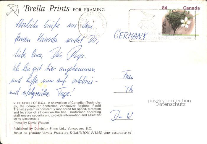 alte Postkarte Eisenbahn The Spirit of B.C. postalisch gelaufen Erhaltung siehe scans