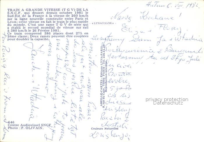Eisenbahn Train Grande Vitesse TGV postalisch nicht gelaufen Erhaltung siehe scans