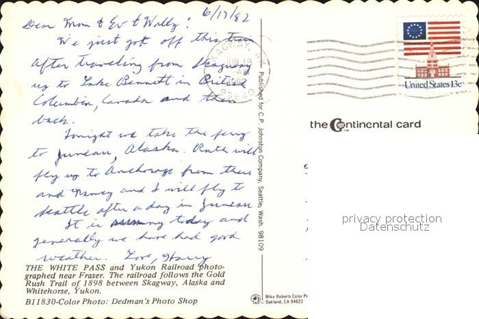 alte Postkarte Eisenbahn White Pass Yukon Railroad postalisch gelaufen Erhaltung siehe scans [PaolaD17]