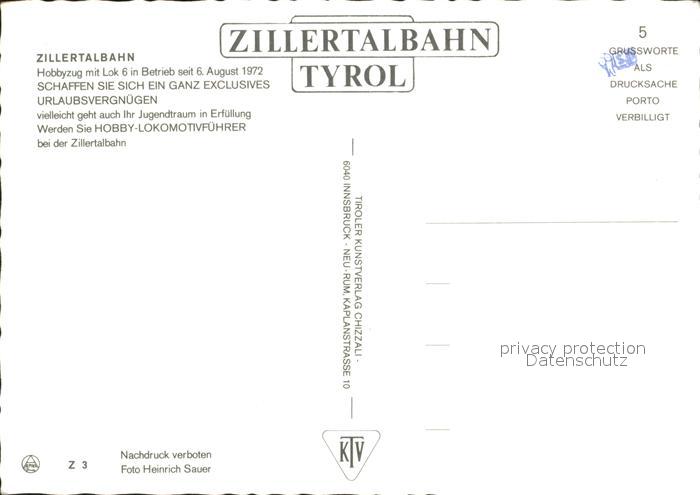 Eisenbahn Zillertalbahn Hobbyzug Lok 6 postalisch nicht gelaufen Erhaltung siehe scans