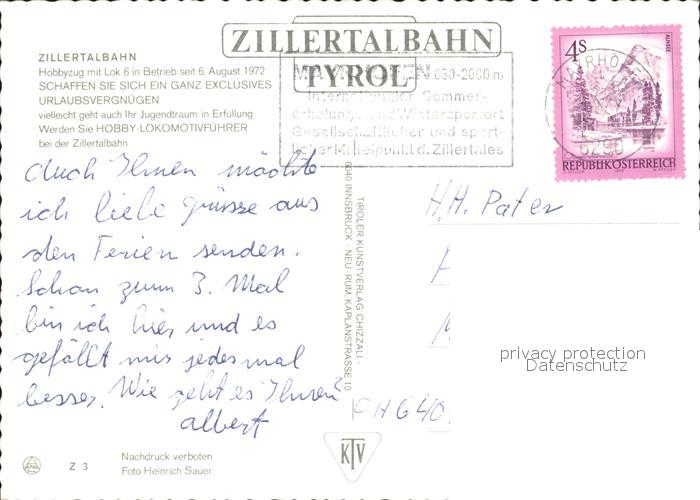 alte Postkarte Eisenbahn Zillertalbahn Hobbyzug Lok 6 postalisch gelaufen Erhaltung siehe scans