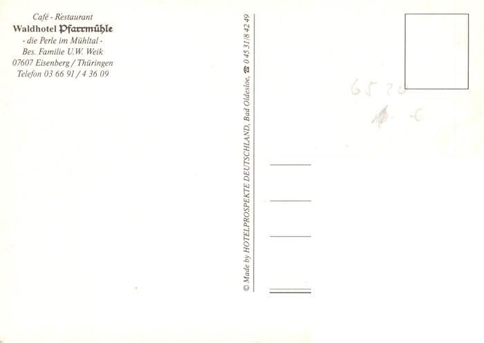 73916486 Eisenberg Thueringen Cafe Restaurant Waldhotel Pfarrmuehle Freiterrasse Reh postalisch nicht gelaufen Erhaltung siehe scans [WerneD78] Wern Katcode 11110016074018