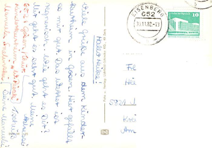 73895944 Eisenberg Thueringen HOG Butte postalisch gelaufen Erhaltung siehe scans [WerneD78] alte Postkarte Wern Katcode 11110016074018