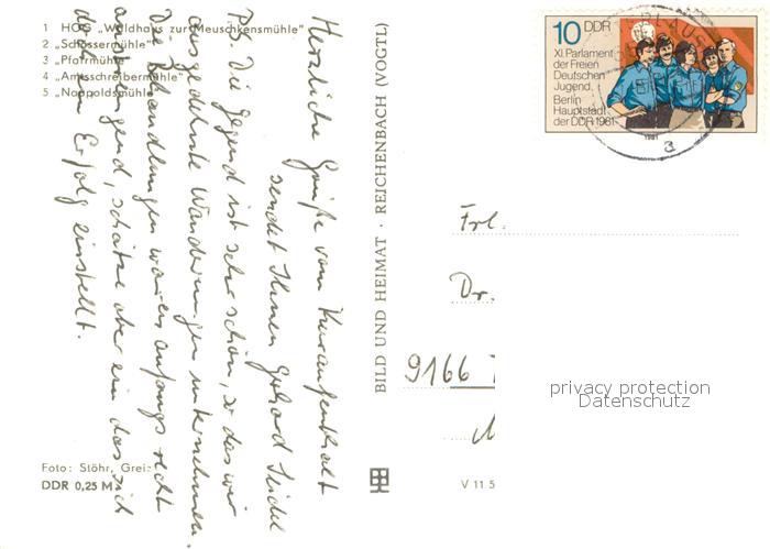 73675744 alte Postkarte Eisenberg Thueringen HOG Waldhaus zur Meuschkensmuehle Muehlen im Muehltal postalisch gelaufen Erhaltung siehe scans [FriedD77] KatCode: 11110016074018