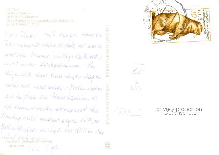 73868031 alte Postkarte Eisenberg Thueringen Rathaus Im Schlossgarten Park des Friedens Neue Schule Ernst Thaelmann Platz postalisch gelaufen Erhaltung siehe scans [WerneD78] KatCode: 11110016074018