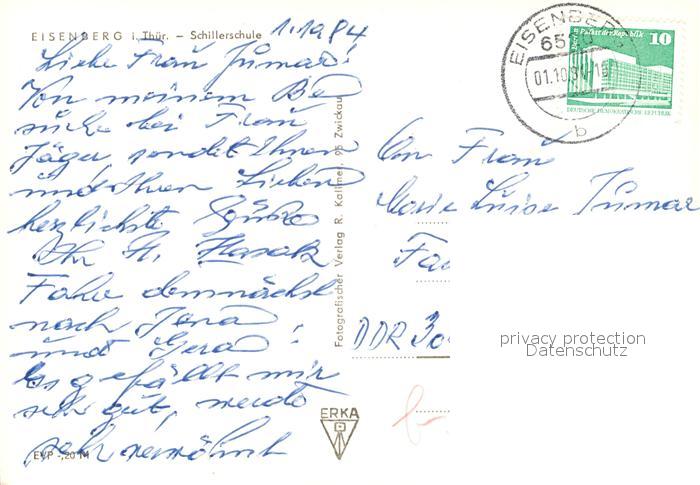 73614320 alte Postkarte Eisenberg Thueringen Schillerschule postalisch gelaufen Erhaltung siehe scans [WerneD78] KatCode: 11110016074018