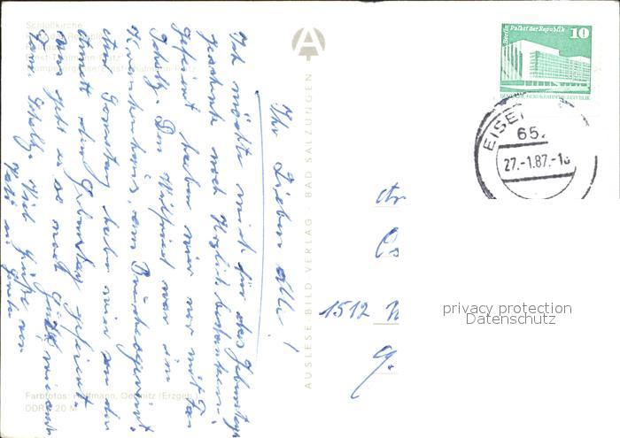 72069499 alte Postkarte Eisenberg Thueringen Schlosskirche Platz der Republik Rathaus Ernst Thaelmann Platz Trompetergasse postalisch gelaufen Erhaltung siehe scans KatCode: 11110016074018