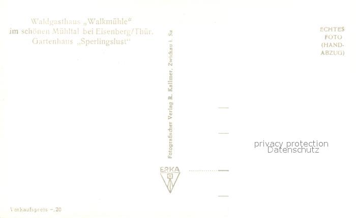 73543758 Eisenberg Thueringen Waldgasthaus Walkmuehle im Muehltal Gartenhaus Sperlingslust postalisch nicht gelaufen Erhaltung siehe scans [FriedD77] KatCode: 11110016074018