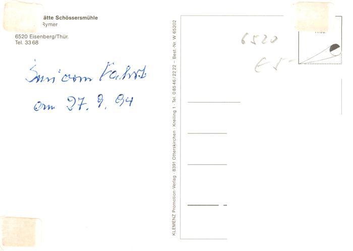 73916962 Eisenberg Thueringen Waldgaststaette Schloessersmuehle Biergarten postalisch nicht gelaufen Erhaltung siehe scans [WerneD78] Wern Katcode 11110016074018