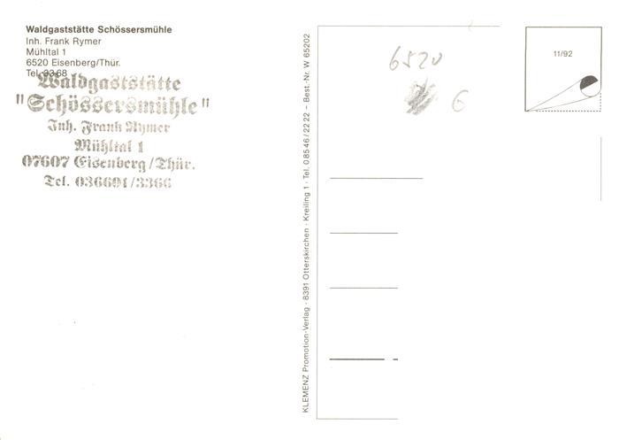 73917134 Eisenberg Thueringen Waldgaststaette Schloessersmuehle Biergarten postalisch nicht gelaufen Erhaltung siehe scans [WerneD78] Wern Katcode 11110016074018