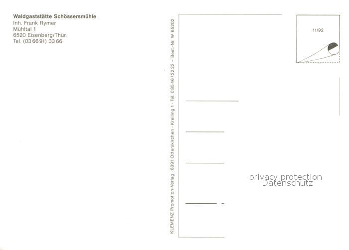 73643057 Eisenberg Thueringen Waldgaststaette Schoessersmuehle Biergarten postalisch nicht gelaufen Erhaltung siehe scans [FriedD77] KatCode: 11110016074018