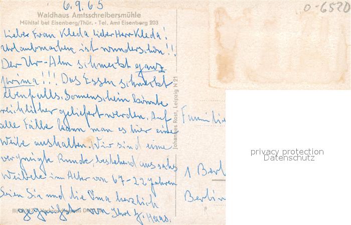 43366859 Eisenberg Thueringen Waldhaus Amtsschreibersmuehle im Muehltal postalisch nicht gelaufen Erhaltung siehe scans [FriedD77] KatCode: 11110016074018