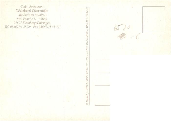73916961 Eisenberg Thueringen Waldhotel Pfarrmuehle Gastraeume postalisch nicht gelaufen Erhaltung siehe scans [WerneD78] Wern Katcode 11110016074018