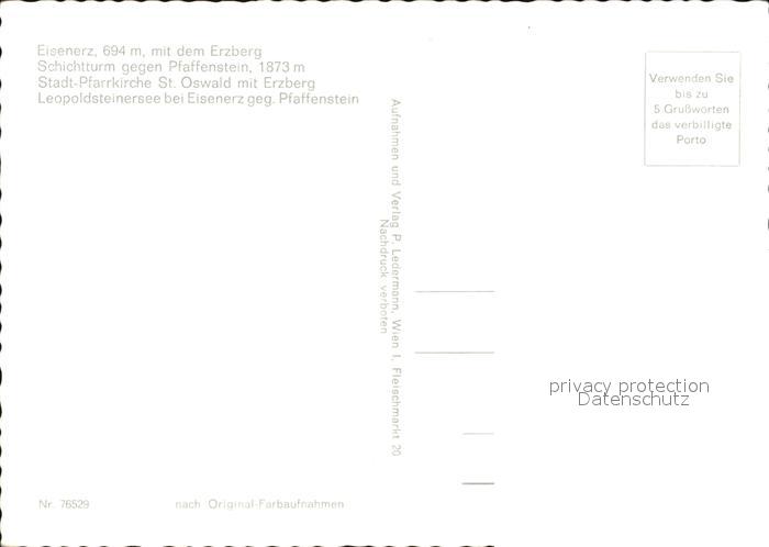 72447113 Eisenerz Steiermark Panorama mit dem Erzberg Schichtturm Pfaffenstein Kirche St Oswald Leopoldsteinersee postalisch nicht gelaufen Erhaltung siehe scans KatCode: 11390223061101