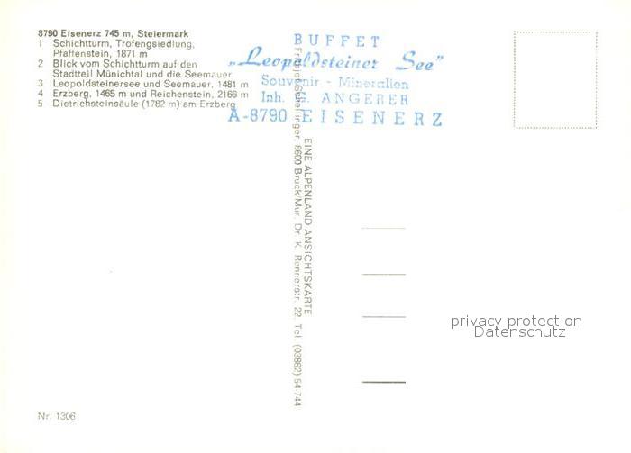 73246297 Eisenerz Steiermark Schichtturm Trofengsiedlung Pfaffenstein Muenichtal Seemauer Leopoldsteinersee Erzberg Reichenstein Dietrichsteinsaeule postalisch nicht gelaufen Erhaltung siehe scans [FriedD77] KatCode: 11390223061101