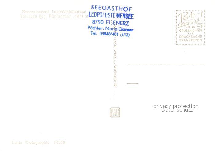 73275052 Eisenerz Steiermark Seegasthof Leopoldsteinersee postalisch nicht gelaufen Erhaltung siehe scans [LiesaD40] KatCode: 11390223061101