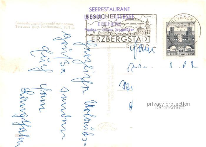 73104447 alte Postkarte Eisenerz Steiermark Seerestaurant Leopoldsteinersee Pfaffenstein postalisch gelaufen Erhaltung siehe scans [KathaD81] KatCode: 11390223061101