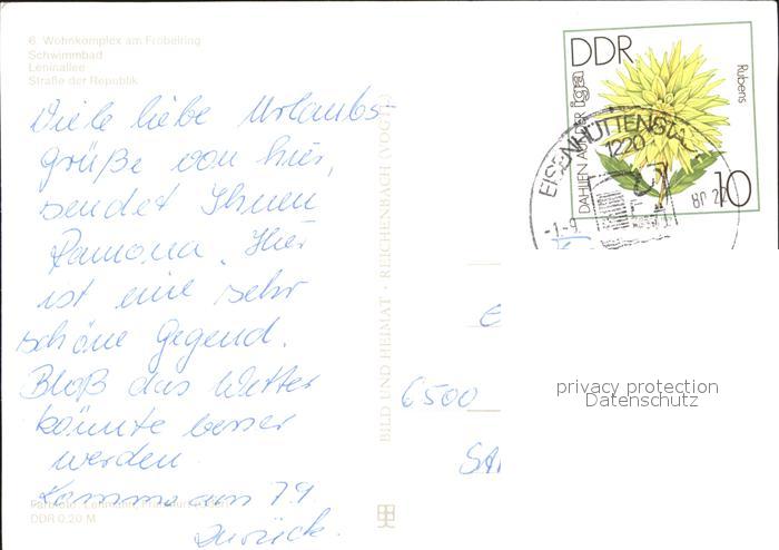 72237063 alte Postkarte Eisenhuettenstadt 6. Wohnkomplex am Froebelring Schwimmbad Leninallee Strasse der Republik postalisch gelaufen Erhaltung siehe scans KatCode: 11110012067120