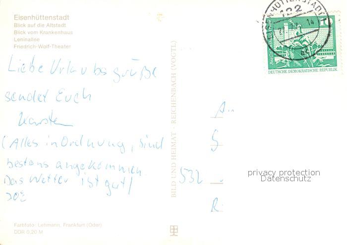 73652195 alte Postkarte Eisenhuettenstadt Altstadt Ortsansicht Leninallee Friedrich Wolf Theater postalisch gelaufen Erhaltung siehe scans [WerneD78] KatCode: 11110012067120