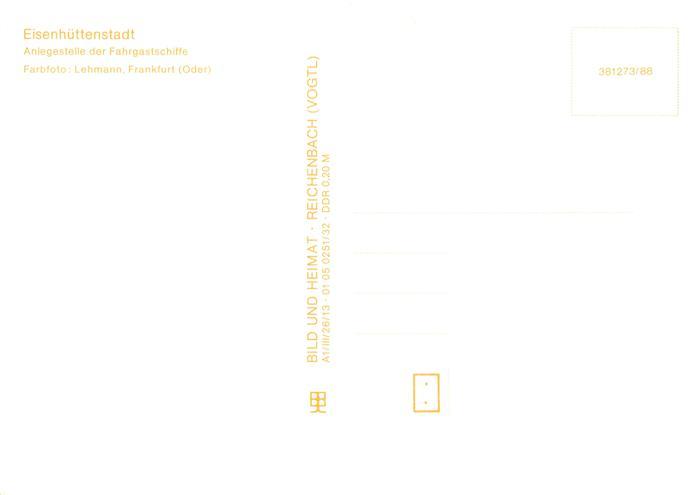 73946791 Eisenhuettenstadt Anlegestelle der Fahrgastschiffe postalisch nicht gelaufen Erhaltung siehe scans [WerneD78] KatCode: 11110012067120