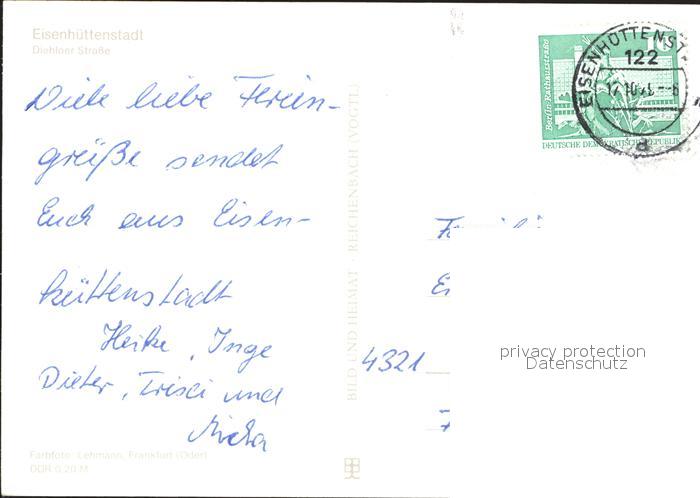 72071739 alte Postkarte Eisenhuettenstadt Diehloer Strasse Teich postalisch gelaufen Erhaltung siehe scans KatCode: 11110012067120