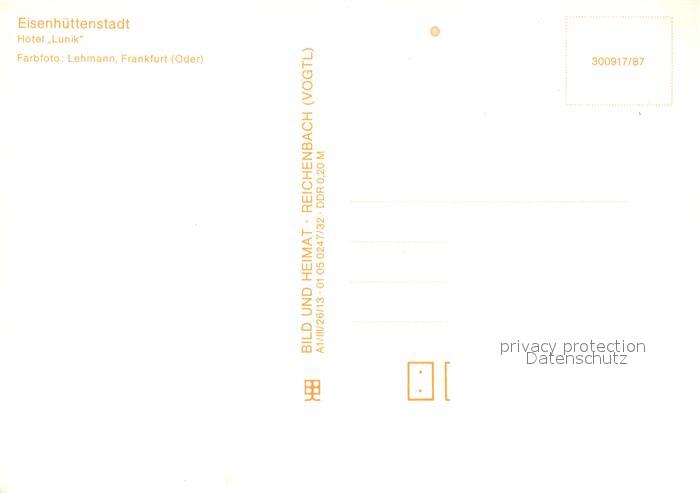 73073619 Eisenhuettenstadt Hotel Lunik postalisch nicht gelaufen Erhaltung siehe scans [WerneD78] KatCode: 11110012067120