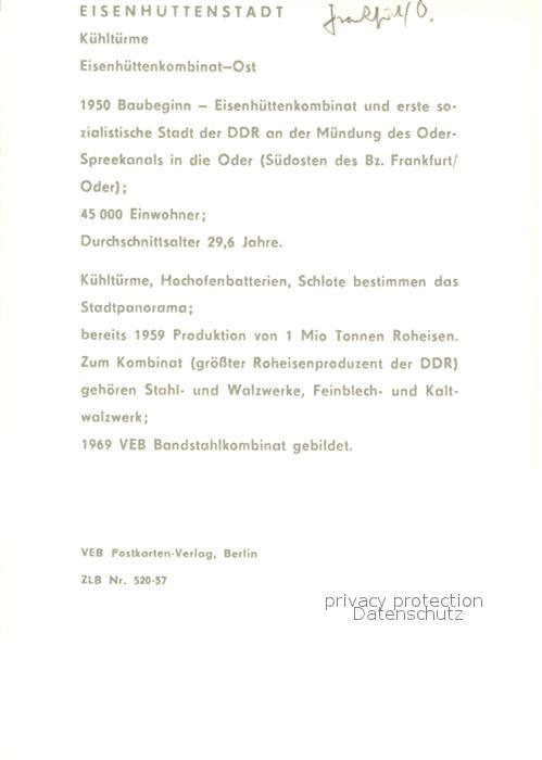 73687565 Eisenhuettenstadt Kuehltuerme Eisenhuettenkombinat Ost Fliegeraufnahme postalisch nicht gelaufen Erhaltung siehe scans [WerneD78] Wern Katcode 11110012067120