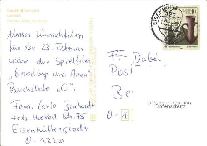 72124893 alte Postkarte Eisenhuettenstadt Leninallee postalisch gelaufen Erhaltung siehe scans KatCode: 11110012067120