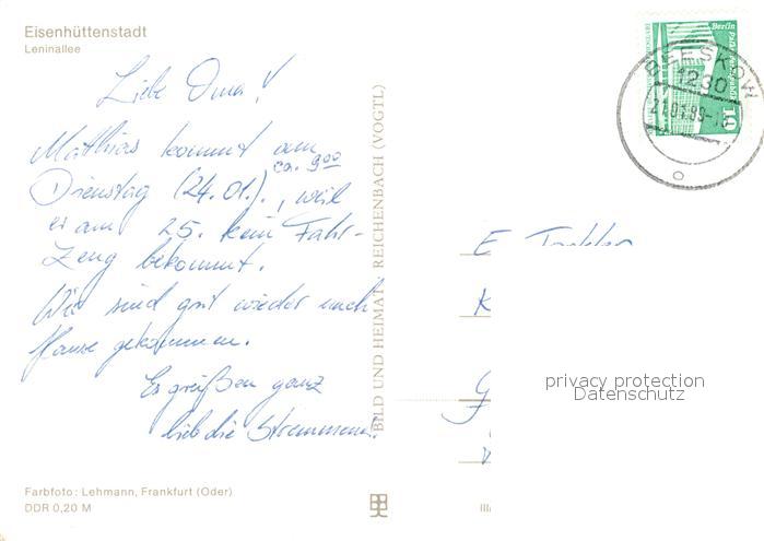 73549895 alte Postkarte Eisenhuettenstadt Leninallee postalisch gelaufen Erhaltung siehe scans [WerneD78] KatCode: 11110012067120