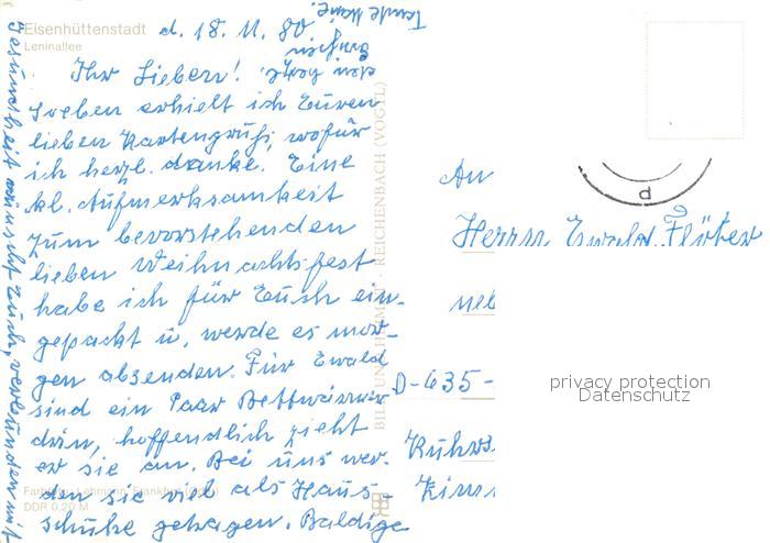 73063883 alte Postkarte Eisenhuettenstadt Leninallee postalisch gelaufen Erhaltung siehe scans [FriedD77] KatCode: 11110012067120