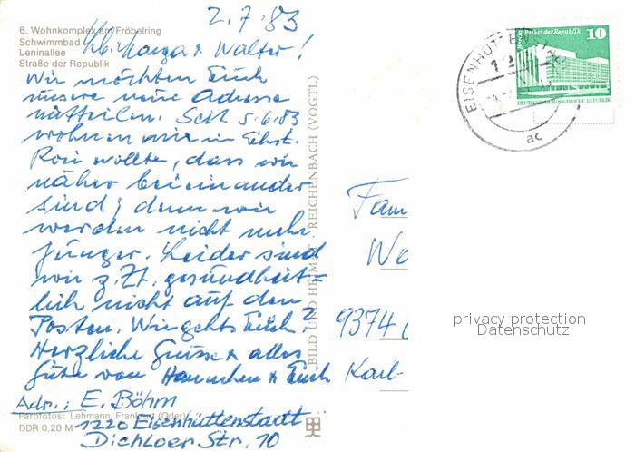 72655735 alte Postkarte Eisenhuettenstadt Leninallee Schwimmbad Wohnkomplex am Froebelring postalisch gelaufen Erhaltung siehe scans [LiesaD40] KatCode: 11110012067120