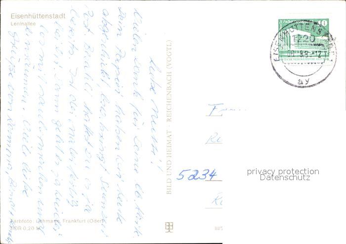 72496726 alte Postkarte Eisenhuettenstadt Leninallee Wasserspiele Hochhaus postalisch gelaufen Erhaltung siehe scans KatCode: 11110012067120