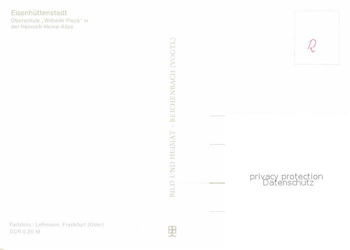 72676217 Eisenhuettenstadt Oberschule Wilhelm Pieck in der Heinrich Heine Allee Springbrunnen Fontaene postalisch nicht gelaufen Erhaltung siehe scans [FriedD77] KatCode: 11110012067120