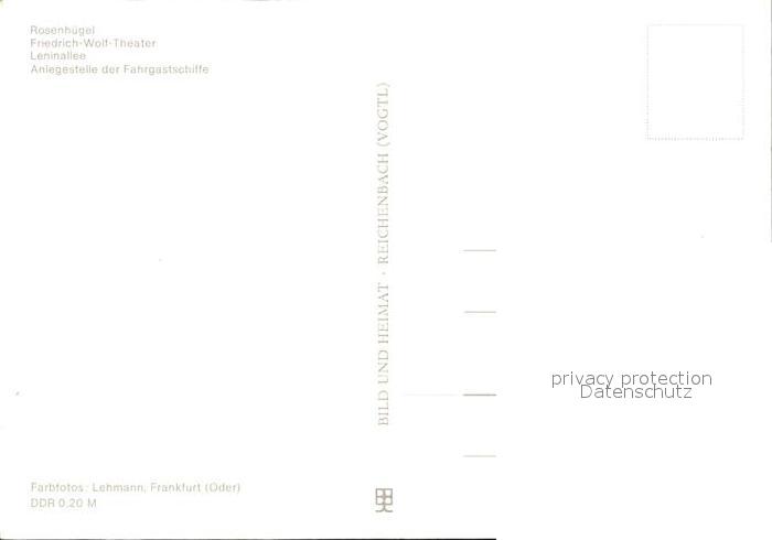 72156541 Eisenhuettenstadt Rosenhuegel Friedr Wolf Theater Leninalle Anlegestelle Fahrgastschiffe postalisch nicht gelaufen Erhaltung siehe scans KatCode: 11110012067120