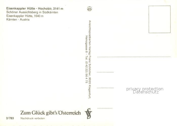 73285177 Eisenkappel-Vellach Eisenkappler-Huette Hochobir postalisch nicht gelaufen Erhaltung siehe scans [NatalD47] KatCode: 11390213020804