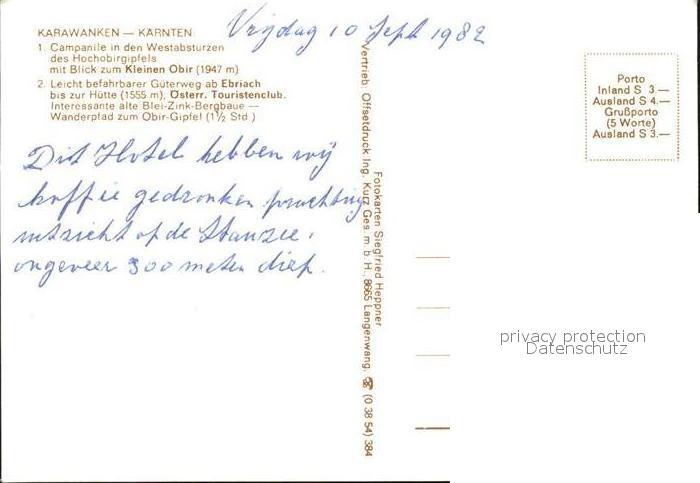 72425712 Eisenkappel-Vellach Hochobir mit Eisenkappler Huette postalisch nicht gelaufen Erhaltung siehe scans KatCode: 11390213020804