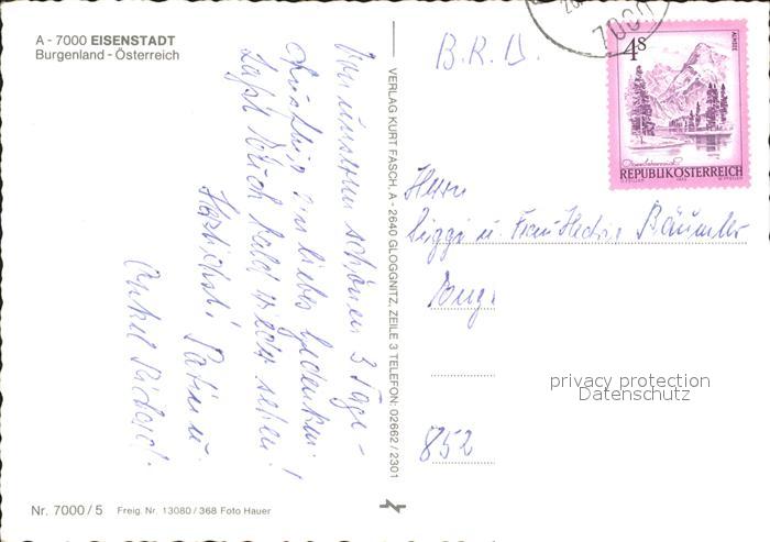 72013459 alte Postkarte Eisenstadt Fliegeraufnahme postalisch gelaufen Erhaltung siehe scans KatCode: 11390112010101