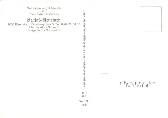 72419664 Eisenstadt Gasthaus Schloss Heurigen postalisch nicht gelaufen Erhaltung siehe scans KatCode: 11390112010101