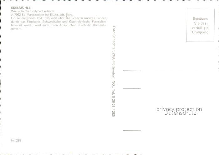 72534332 Eisenstadt Restaurant Eselmuehle St. Margarethen postalisch nicht gelaufen Erhaltung siehe scans [LiesaD40 kt120box] KatCode: 11390112010101