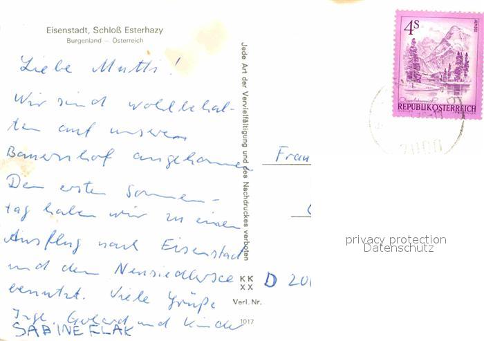 72714473 alte Postkarte Eisenstadt Schloss Esterhazy postalisch gelaufen Erhaltung siehe scans [LiesaD40] KatCode: 11390112010101