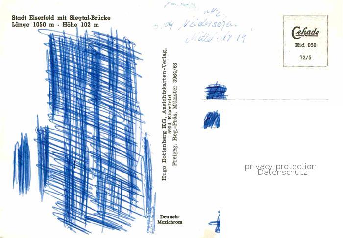 72846059 Eiserfeld Fliegeraufnahme mit Siegtal-Bruecke postalisch nicht gelaufen Erhaltung siehe scans [LiesaD40] KatCode: 11110005970040