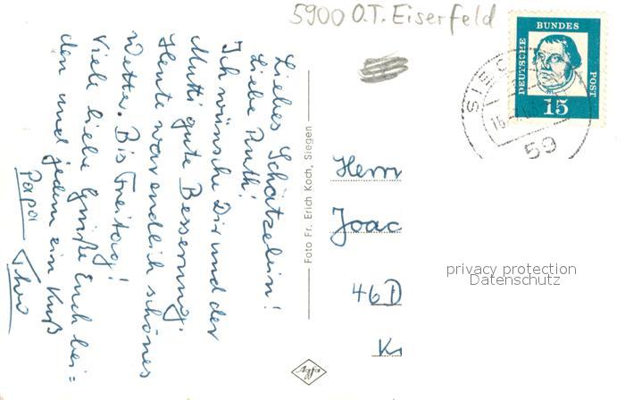73700780 alte Postkarte Eiserfeld Siegen Am Siegwehr Ortsansicht mit Kirche postalisch gelaufen Erhaltung siehe scans [FriedD77] KatCode: 11110005970040