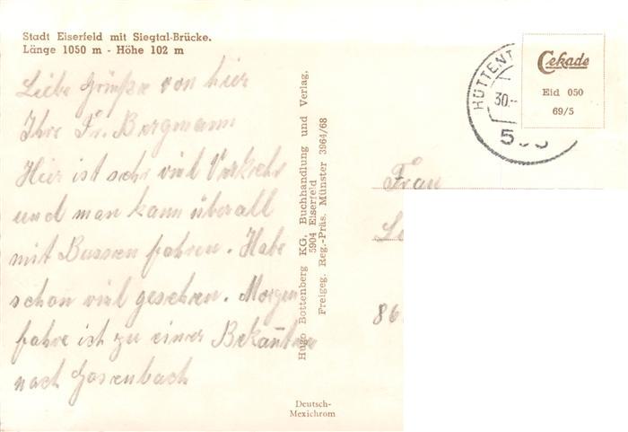 73903537 Eiserfeld Siegen Westfalen Fliegeraufnahme mit Siegtal Bruecke postalisch gelaufen Erhaltung siehe scans [FriedD77] alte Postkarte Frie Katcode 11110005970040