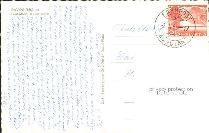 alte Postkarte Eiskunstlauf Davos Eisstadion postalisch gelaufen Erhaltung siehe scans