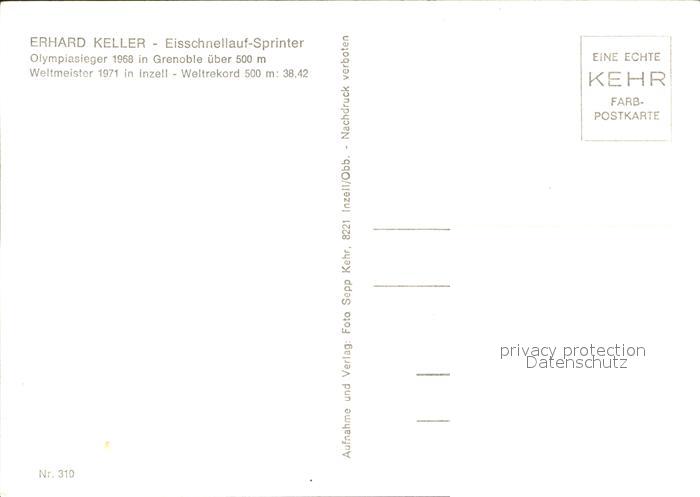 Eislaufen Schlittschuhlaufen Erhard Keller Eisschnelllauf-Sprinter postalisch nicht gelaufen Erhaltung siehe scans