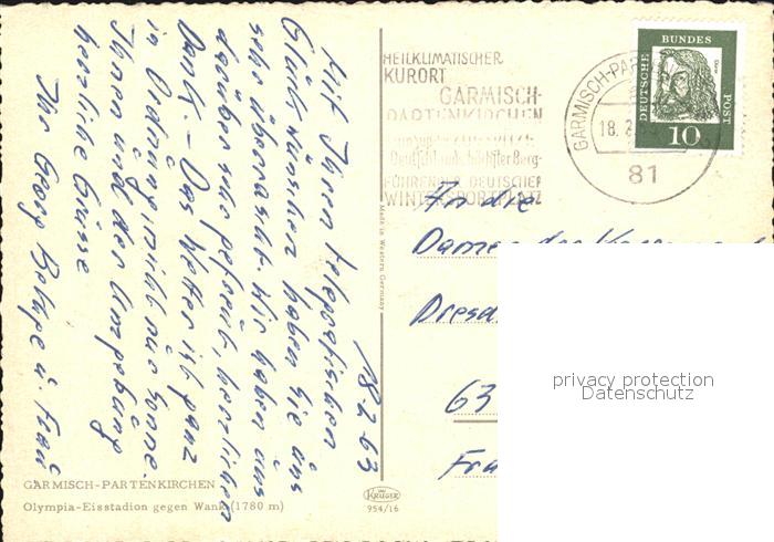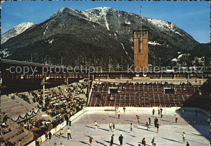 alte Postkarte Eislaufen Schlittschuhlaufen Olympia-Eosstadion Garmisch-Partenkirchen postalisch gelaufen Erhaltung siehe scans
