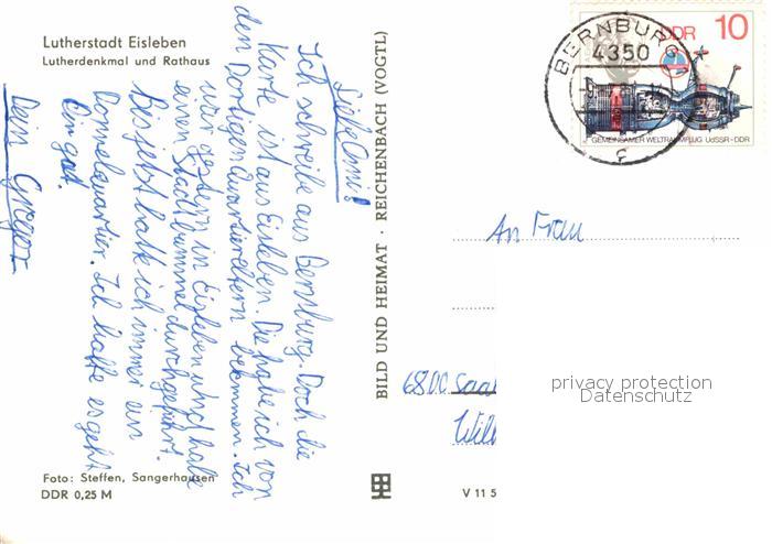 72870298 alte Postkarte Eisleben Lutherdenkmal Rathaus postalisch gelaufen Erhaltung siehe scans [NatalD47] KatCode: 11110015087130