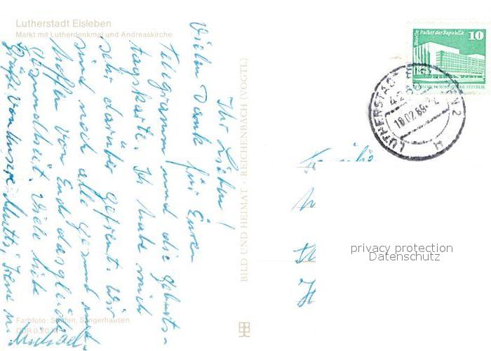 72986695 alte Postkarte Eisleben Lutherstadt Markt Lutherdenkmal Andreaskirche postalisch gelaufen Erhaltung siehe scans [LiesaD40] KatCode: 11110015087130